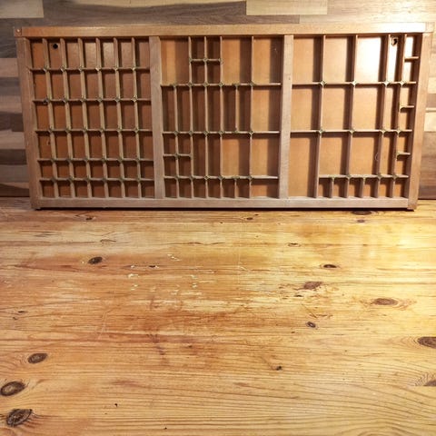 Træ sættekasse m 98 rum (gammel skuffeindsats)
