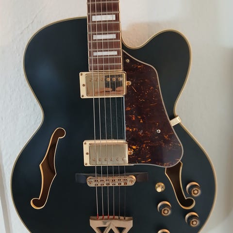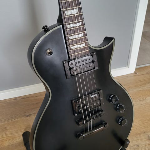 Guitaren er købt i november 25 ved fysisk musikbutik i Odense. Den er blevet spillet ganske lidt på, hvorfor den fremstår som ny.