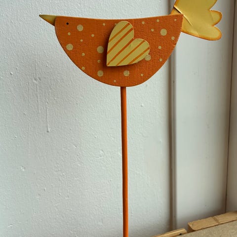 Så flotte de er lavet af stof og piedestal er lavet af træ orange gul og grøn med prikker