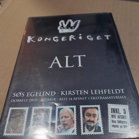 Kongeriget Alt dobbelt DVD boks. Indeholder hele serien med i alt 14 afsnit og en samlet spilletid på ca. 8 timer samt ekstramateriale. Medvirkende blandt andre Søs Egelind og Kirsten Lehfeldt. Velegnet til afspilning på DVD‑afspillere, der understøtter DVD‑video formatet.