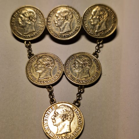 Mønt broche med indskrift en LUDOVICVS MAGNVS REX. Ved ikke hvor den kommer fra. Det var min oldefars. Jeg er 99 % sikker på at det er sølv.