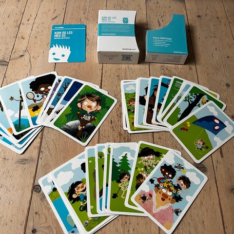 Shufflebook Kom og leg med os aktivitetskort til udendørsaktiviteter for børn 3-10 år. Sættet består af kort med idéer til lege og aktiviteter, der kan udføres udenfor. Hvert kort indeholder illustrationer og trin-for-trin vejledning til gennemførelse af aktiviteten. Kortene er samlet i en æske, som gør dem nemme at opbevare og tage med. Velegnet til brug i have, park, skolegård eller andre udendørsområder, hvor børn kan bevæge sig og lege sammen.