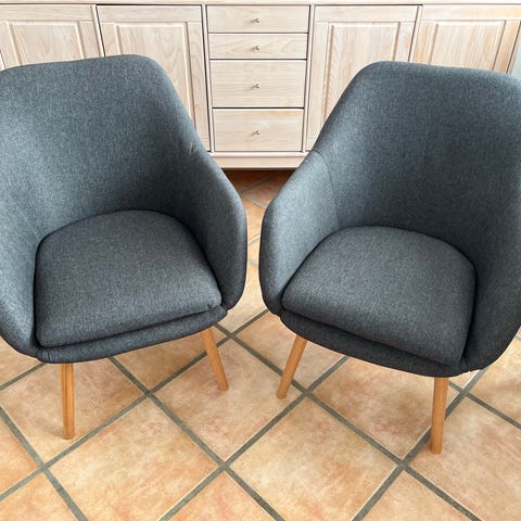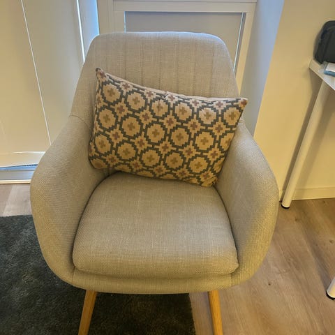 Flot og komfortabel lænestol i stof med sæde- og ryghynder i skum. Benene er massive, hvilket giver et stilrent og robust look.