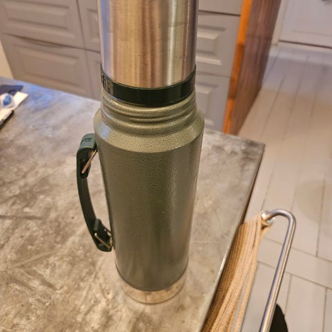 Stanley termokop i klassisk Stanley grøn. Brugt få gange, god til kopholder. Holder godt på både kolde og varme drikkevarer.