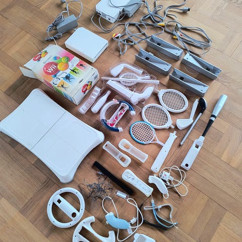 Nintendo Wii med Harddisk. +100 titler, 2 controllere med motion plus. 2 nunchucks, sensorbar, strømforsyning og en masse tilbehør. (Se billeder).