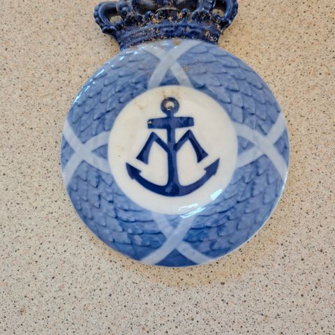 Royal Copenhagen Thomas Jefferson mini mindeplatte i fajance. Rund vægplatte med blå dekoration og portræt samt årstallene 1743 og 1826. Bagsiden er stemplet med Royal Copenhagen-mærke, modelnummer 176 og årstal 2010 og har ophængskrog monteret til ophæng på væg. Måler 6 cm.
