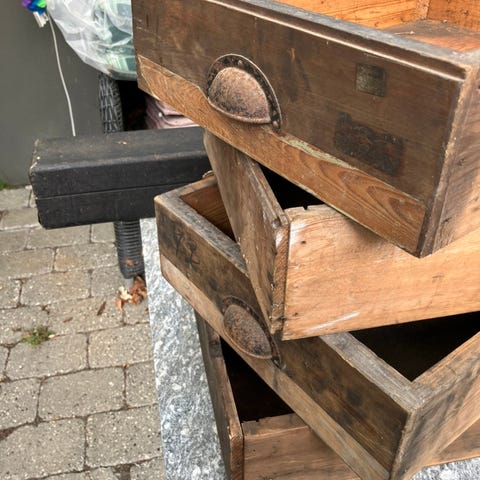 Retro vintage dekorative træskuffer(formodentlig egetræ).