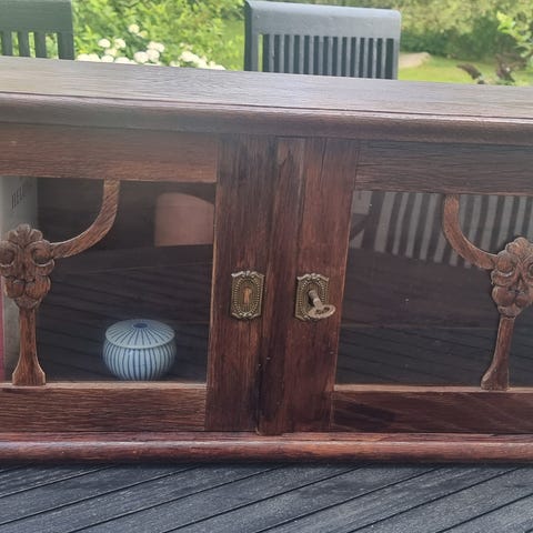 Lille vitrineskab, eg, overskab