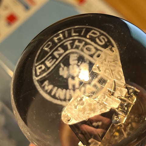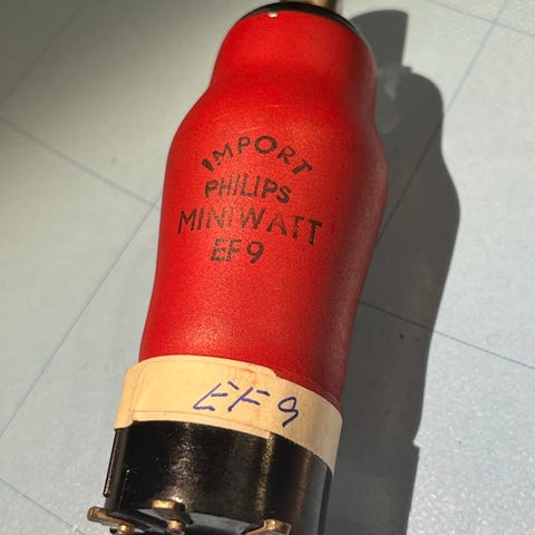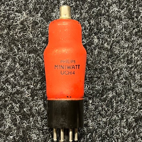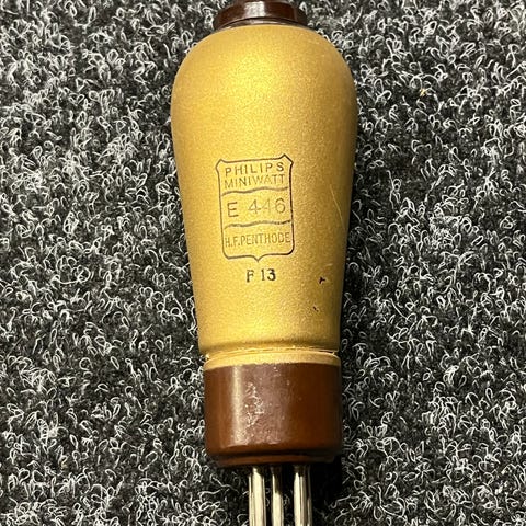 Philips Miniwatt CF50 elektronrør. Røret har topkontakt og bund med flere ben til montering i rørholder. Egnet til brug i ældre radio- eller forstærkerudstyr, hvor denne type CF50-rør indgår i kredsløbet. Yderligere tekniske specifikationer afhænger af det konkrete apparat og datablad for CF50-typen.