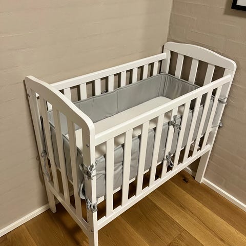JLY Dream Dropside Tremmeseng købt brugt for 1 år siden. b: 60 l: 120, Justerbar tremmeseng. Siden kan hæve og sænkes. Og bunden kan indstilles i 3 højder. Madrassen er købt fra ny, kun 1 år gammel, BabyDan - Madras Airlux, 9 cm høj. Sengerand, 2 x vådliggerlagner og 2 x lagner medfølger.