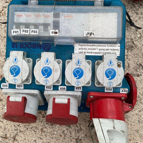 Enheden er forsynet med flere CEE-udtag i rød og blå til tilslutning af el-værktøj og andet udstyr på byggeplads eller lignende midlertidige installationer. Tavlen er opbygget efter Europanorm EN 61439-4 og er CE-mærket. Velegnet som midlertidig strømfordeling på byggepladser, i værksteder eller ved arrangementer, hvor der er behov for flere udtag fra én forsyning.