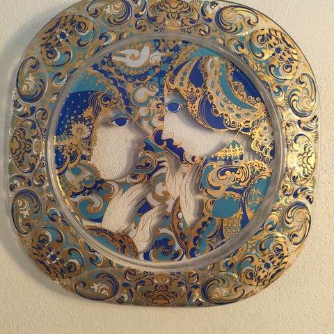 Rosenthal "juleplatte" i krystalglas, designet af danske Bjørn Wiinblad. 1976 Jomfru Maria og jesusbarnet.
