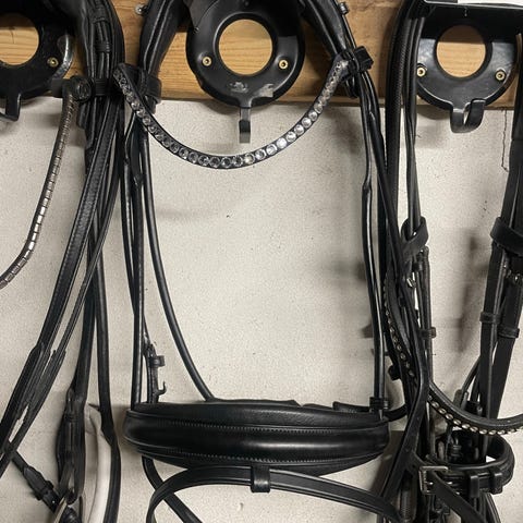 Catago savi trense i sort læder str Cob, med hvidt foret næsebånd. Trensen har anatomisk udformet nakkerem og pandebånd med sten. Velegnet til brug i ridning, fx til dressur eller daglig træning af hest. Helt ny, med pris mærke