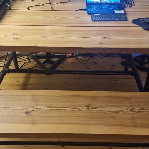 Kan også laves som spisebord, sofabord ,bænk, natbord efter ønskede mål . Hvis selve bordstellet ønskes længere end mand/jeg kan få selve bordpladen kan man jo bare sætte flere bordplader i forlængelse af hinanden .