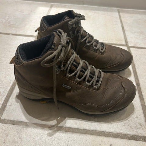 Merrell vandrestøvler i størrelse 43. Støvlerne er sorte med grå detaljer og snørelukning med metaløjer og kroge. Overdelen er i et kombineret materiale med glat overflade og tekstil ved skaftet. Ydersålen har kraftigt mønster for godt fodfæste. Indersålerne fra Merrell medfølger. Velegnet som vandre- eller fritidsstøvler.