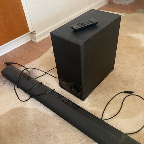 Soundbaren har flere lydtilstande, automatisk justering og en klar LED-baggrundsbelysning.