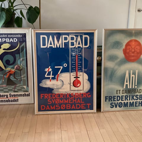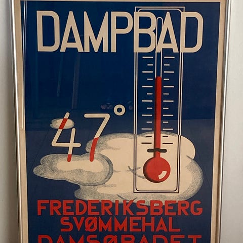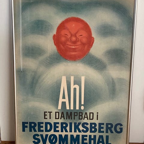 Frederiksberg Svømmehal Originalt litografisk tryk indrammet i forsølvet træramme.