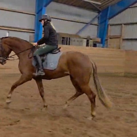 Hun kan være lidt bag hjælpen indtil hun lære en at kende . Hun har brug for tid til at omstille sig til ny rytter. Når man har fundet ind til hende er hun en frisk og selvgående hest der hele tiden byder ind.