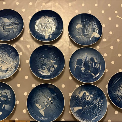 Bing & Grøndahl juleplatter porcelæn blå-hvide