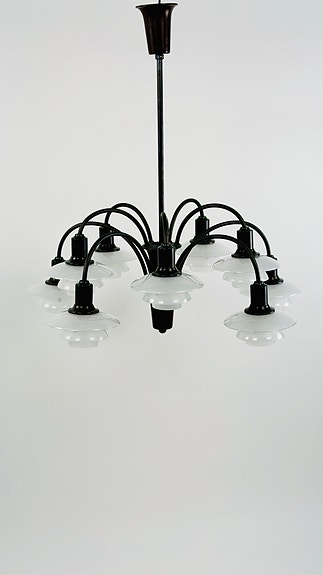 Arne Jacobsen, Royal 370, pendel, Lampen fremstår renoveret med ny maling (hvid), bundplade og med ny ledning.