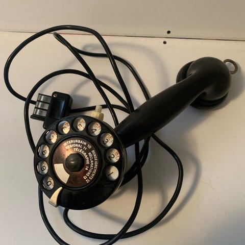 Det viser en Royal Albert knogleporcelænsbordtelefon. Disse typer telefoner blev fremstillet mellem 1960’erne og 1980’erne, ofte bestilt af PTT (det hollandske Post- og Telemerskab).