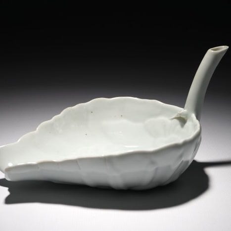 Befrielsesvase - Libationskål i Blanc de Chine med dekoration af nubuck, drag...