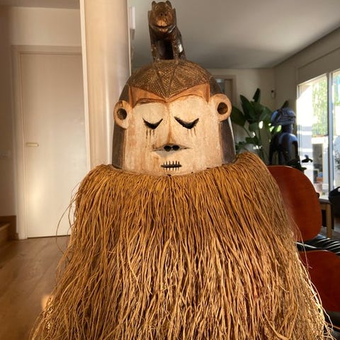 Paspoort, en træmaskemask fra Congo af Luba-Songey-kulturen, dateret 1920–1940, måler 23 × 51 × 14 cm, vægt 780 g, unsigned og uden stand. Klik på den blå "gå til varen" knap, for at købe eller byde på denne vare. Den samlede pris vil blive vist inden du afgiver dit bud.