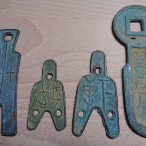 Katanga-kors mønter fra det belgiske Congo, fra det 19. til 20. århundrede under Katanga; tre enheder, i alt ca. 950 g, kobber eller legering. Klik på den blå "gå til varen" knap, for at købe eller byde på denne vare. Den samlede pris vil blive vist inden du afgiver dit bud.
