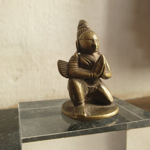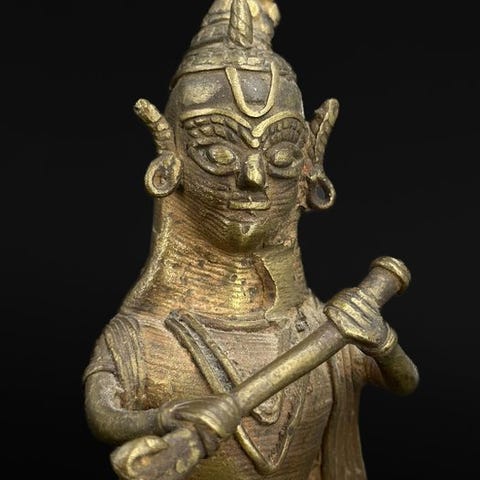Bronze-skulptur fra Indien med titlen Durga Mahishasura mardini, dynastisk stil siglo XVII_XVIII, 7 cm bred, 13 cm høj og 4 cm dyb, i god stand, fra privat samling. Klik på den blå "gå til varen" knap, for at købe eller byde på denne vare. Den samlede pris vil blive vist inden du afgiver dit bud.