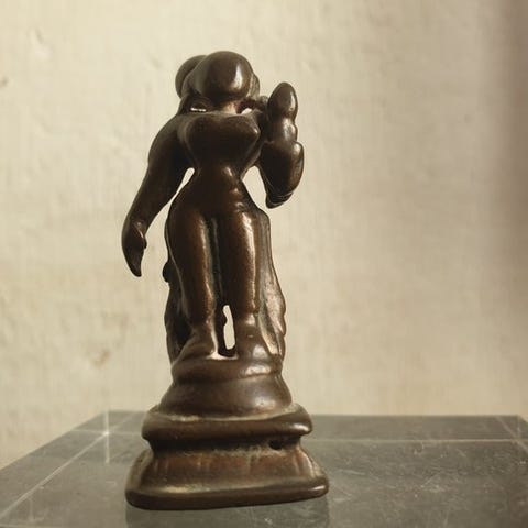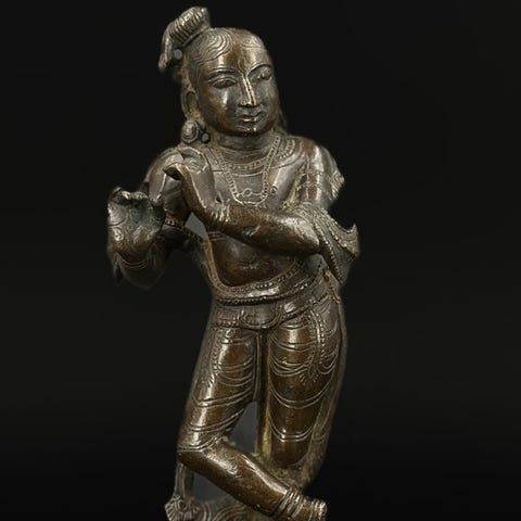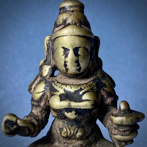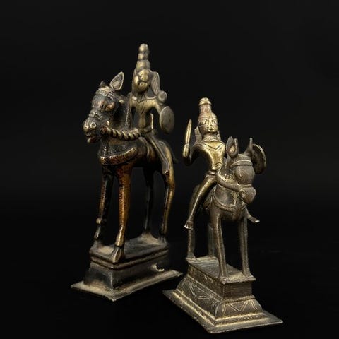 Skulptur, Mahiṣāsuramardinī, bronzo a cera persa con prabhāvali a nāga, India...
