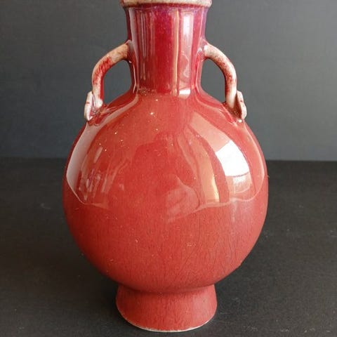 Vægvase i form af bittermelon, porcelæn med Qianjiang cai dekoration, underskrevet Li Mingliang, Republikken Kina (1912–1949), 26 cm høj, 7,3 cm bred. Klik på den blå "gå til varen" knap, for at købe eller byde på denne vare. Den samlede pris vil blive vist inden du afgiver dit bud.