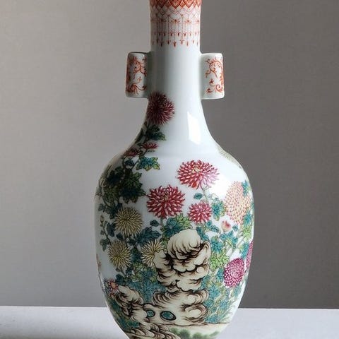 Qianjiang cai 浅绛彩 - bittermelon - Vægvase - Signed: 李明亮款 Li Mingliang - Kina ...