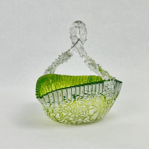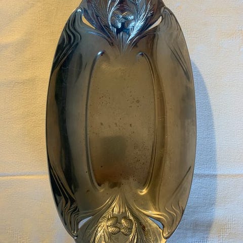 Tilstand: generelt meget god. Den indvendige bund viser nogle få små mørke pletter, som ikke kunne fjernes med forsigtig rengøring; disse er udelukkende kosmetiske og påvirker ikke brug eller stabilitet.