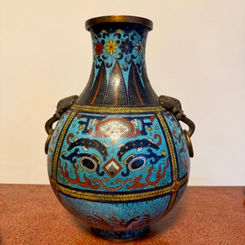 Et guld- og cloisonné emalje-inlagt fragment dateret til Qianlong-perioden i Qing-dynastiet. Stykket har en buet form og blev sandsynligvis oprindeligt monteret som en del af et større kejserligt hofobjekt. Cloisonné-emaljedekorationen er udsøgt udført og anvender en kompleks dobbeltlags teknik, der demonstrerer et højt teknisk niveau og håndværksmæssig kunnen.