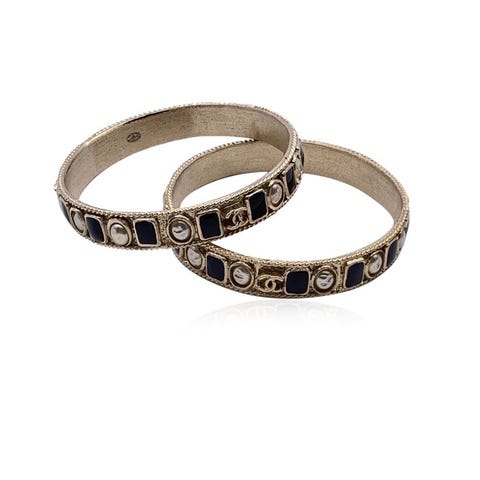 Et statement-stykke med tydelig parisisk flair, denne Chanel-manchetarmbånd indkarakteriserer husets dristige æstetik fra sen-2000-tallet. Fremstillet i blank sort harpiks, det brede bånd bøjer sig glat rundt om håndleddet og åbnes med en diskret hængelåse for en let og elegant pasform. I hjertet glimter et krystalbelagt CC-logo, der fanger lyset og balancerer moderne minimalisme med Chanels særlige gnistre. Indersiden er præget af stempelbildet "Chanel 09 CC P Made in Italy", som markerer det som en del af forårs-kollektionen 2009 - et subtilt nik til arven. Størrelsen passer til håndled op til 16,5 cm (6,5 in). Dette vintageskøn bro mellem tidløs luksus og nutidig