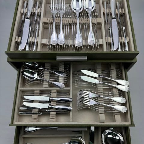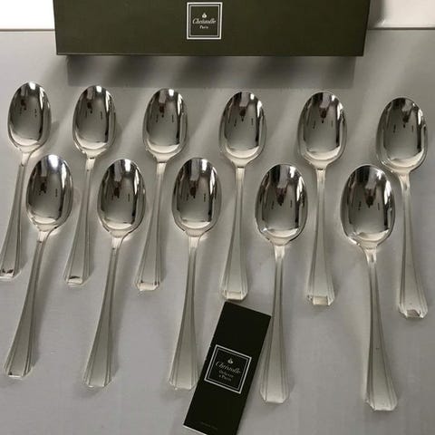 Alle dele bærer det originale Christofle-mærke indgraveret, garanti for ægthed og husets kvalitet.