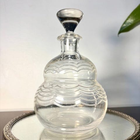Håndlavet høj karaffel fremstillet i lysegrøn og gennemsigtigt krystal i overensstemmelse med vores oplysninger tilknyttet St. Louis.