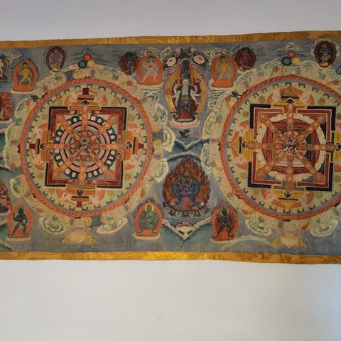Jeg sælger et thangka, et traditionelt buddhistisk maleri, der bruges til meditation.