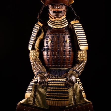 Yoroi fuldstændig samurai-rustning fra Edo-perioden (1600–1868), lavet af jern med silke og kobberdetaljer, oprindelig fra Japan, i fremragende stand, inkl. den originale træopbevaringskasse og stand, samt et ægthedscertifikat fra Supein Nihonto. Klik på den blå "gå til varen" knap, for at købe eller byde på denne vare. Den samlede pris vil blive vist inden du afgiver dit bud.