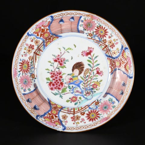 Tallerken - Coupe aux émaux rose et or à décor d'une fleur de lotus - Porcelæn