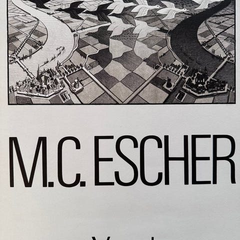 De Vorpal Gallery arrangerede forskellige udstillinger i USA med Eschers værker og lavede smukke plakater til dem, hvoraf denne er en.