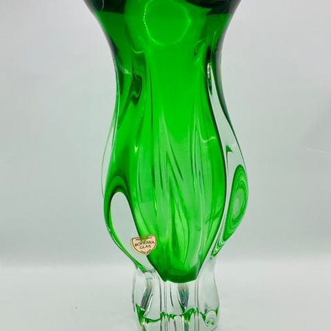 En enkelt glasvase fra Duha-serien, tegnet i 1963 af Vlastimil Svoboda for Mstisov Glashütte i Tjekkoslovakiet; højde 26 cm, diameter 9 cm, vægt 1278 g, i særdeles god stand med let indvendig slid. Klik på den blå "gå til varen" knap, for at købe eller byde på denne vare. Den samlede pris vil blive vist inden du afgiver dit bud.