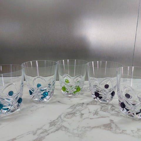 Flakon med konkave facetter og kanter skåret i diamantlignende snit.