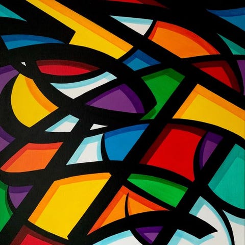 Opdag et kraftfuldt og dynamisk værk af den samtidskunstner Francois Charles Bazelaire, kendt for sine eksplosive farver, udtryksfulde penselstrøg og energiske abstrakte kompositioner.