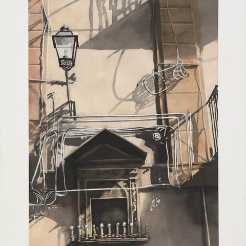 Max Kreijn (1947–2013), Queensland, 2004, original akvarel, håndsigneret, 77 × 58 cm, motiv Arkitektur, oprindelse Nederlandene, solgt af Galerie, i god stand. Klik på den blå "gå til varen" knap, for at købe eller byde på denne vare. Den samlede pris vil blive vist inden du afgiver dit bud.