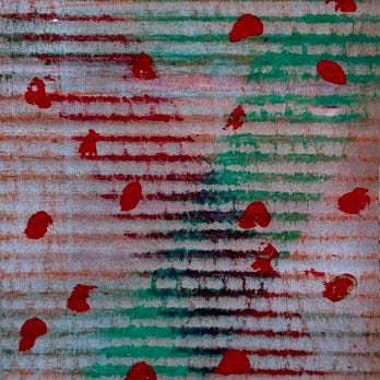 Paolo Masi (Firenze 1933) efter de første uformelle erfaringer i 1950'erne begyndte i 1960'erne at arbejde med at 'transformere' materialerne. I 1974 flyttede hans 'analytiske opmærksomhed' til 'Tessiture' (syede lærreder) og især på emballagekartoner, som han bearbejdede med forskellige maleteknikker og uden, for at udvikle en helt personlig struktur af dette fattige materiale. Malet med lyse og livlige farver, med emalje på bølgepap, signeret og datert bagpå. Ægthedscertifikat på foto, underskrevet og dateret af kunstneren.