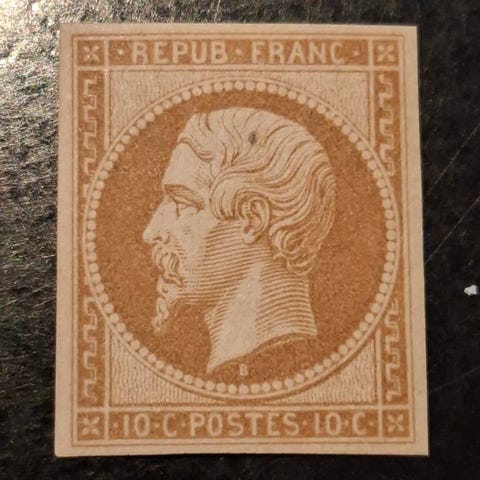 Jeg sætter på dette site de 10 første frimærker fra Frankrig, nr. 1 til 10