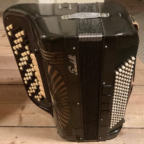 chromatisk knapharmonika (5-rækkers) med stradella-basser til venstre