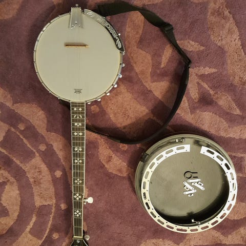 Recording King RKOH-05 5-strenget åben-back banjo, helt ny, testet og funktionsdygtig, vægt 3 kg. Klik på den blå "gå til varen" knap, for at købe eller byde på denne vare. Den samlede pris vil blive vist inden du afgiver dit bud.