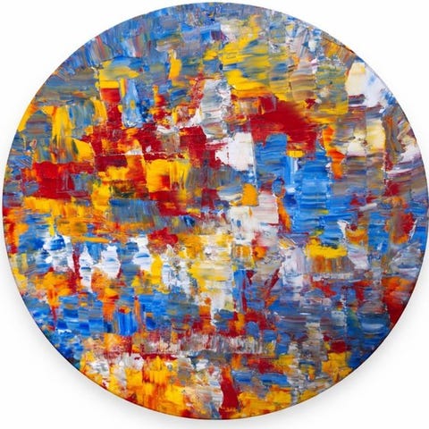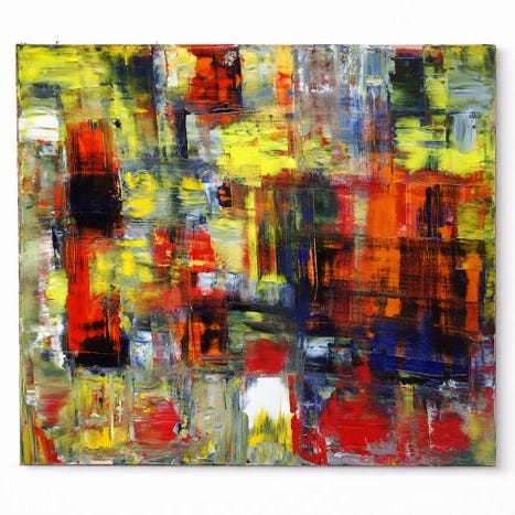 I denne værk i serien Abstract Impulses bygger Junior Valle en intens og lagvis komposition, hvor farven bliver stof, handling og rytme. Malerfladen er gennemtrængt af overlappende felter, klare tegn og slibninger der afslører en instinktiv men kontrolleret malerproces.